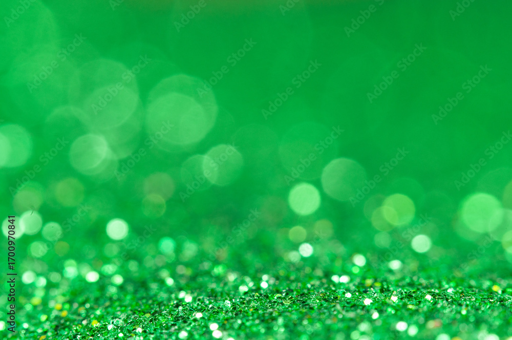 Bright green glitter shines under soft light creating a vibrant background effect