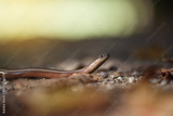 Close-up of a slow worm Anguis fragilis, legless lizard crawling on the ground in natural habitat