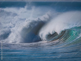 CLOSE UP: Wave with offshore spray breaks violently when it reaches shallower water. White foam splashes as crest of the wave collapses. Atlantic Ocean shows its power on the coast of sunny Morocco.
