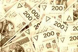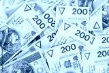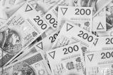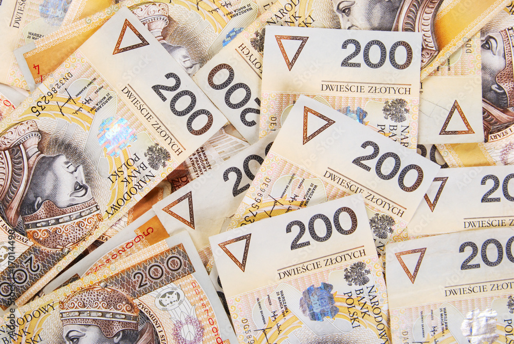 background made of polish 200 zloty banknotes