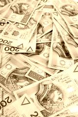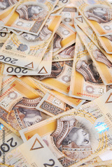 background made of polish 200 zloty banknotes