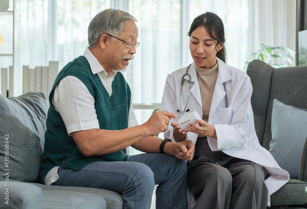 Doctor Explaining Medication to Senior Patient During Medical Consultation