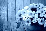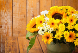Autumn Flower Boquet with Sun Flowers on Wooden Background