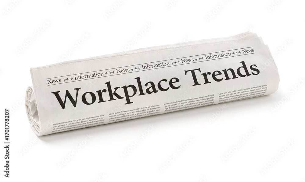 Rolled newspaper with the headline Workplace Trends