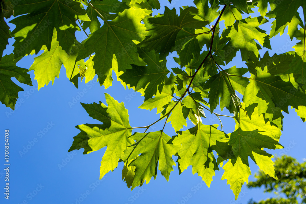 maple leaves against blue sky