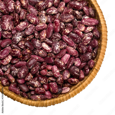 Wicker basket brimming with fresh cranberry beans on transparent background