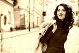 Beautiful woman in autumn style in town. Fashionable concept