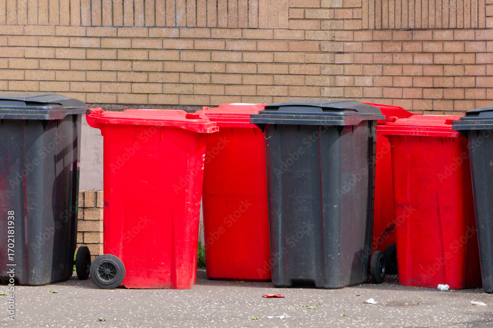 Wheelie bins in row for refuge collection outdoors