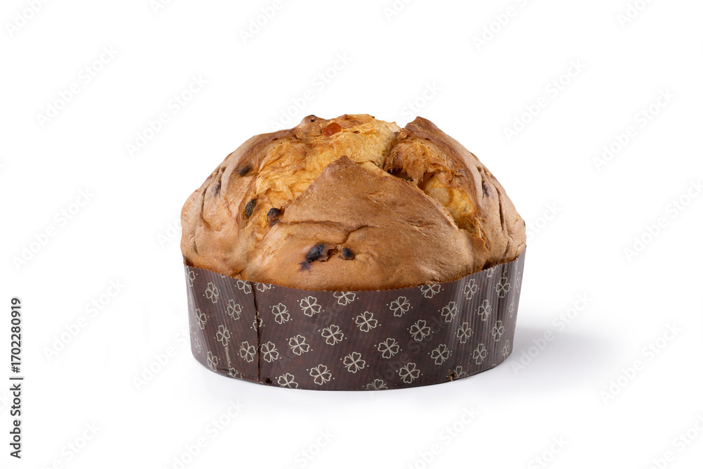 Panettone from Italy, Traditional Christmas Sweet Bread with Raisins – Isolated on White Background