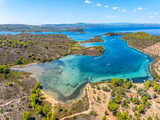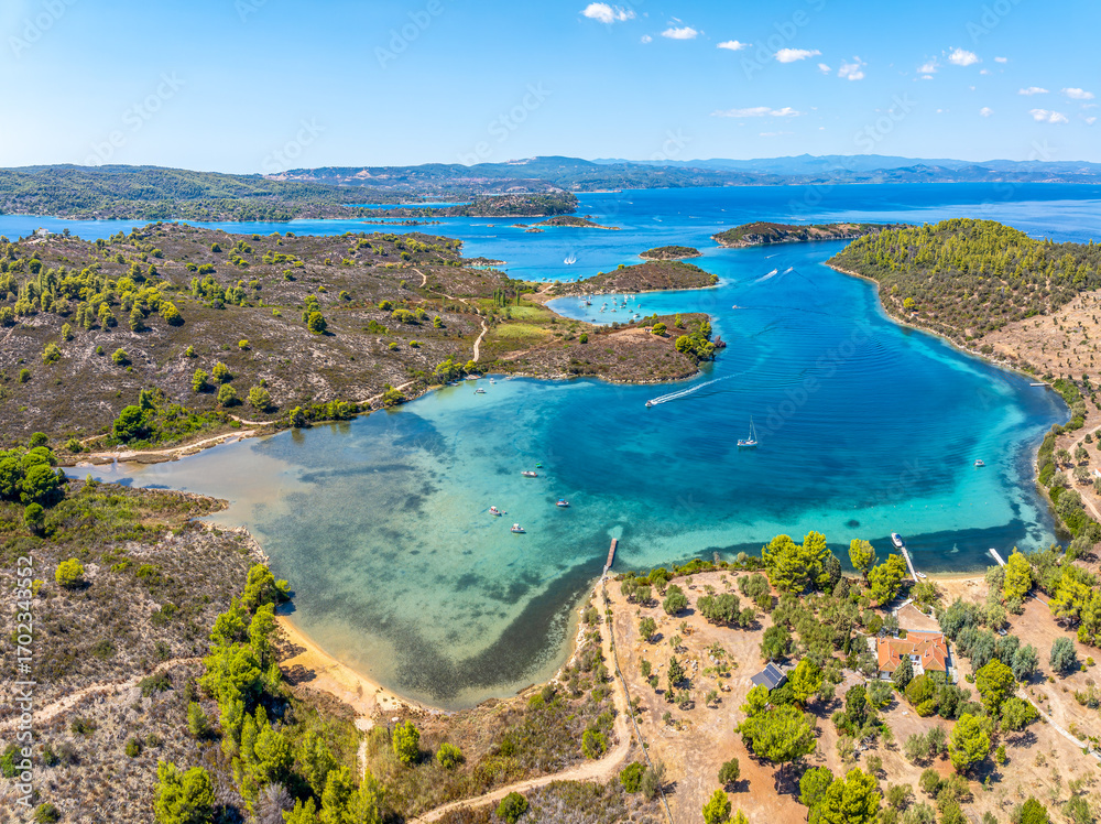 Aerial view of Diaporos Island, Vourvourou, Halkidiki, Greece.
