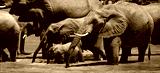 Herd of thirsty African elephants at a riverbank at the Samburu national park in Kenya