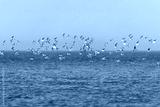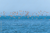 A group of Crab plovers flying on the shore in Bay of bengal inside Marine National Park, Gujarat