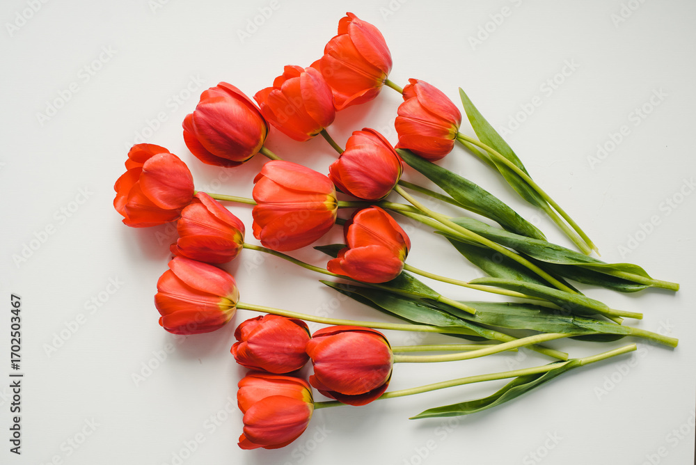 bouquet of tulips. Bouquet of tulips on a white background. Red tulips.