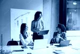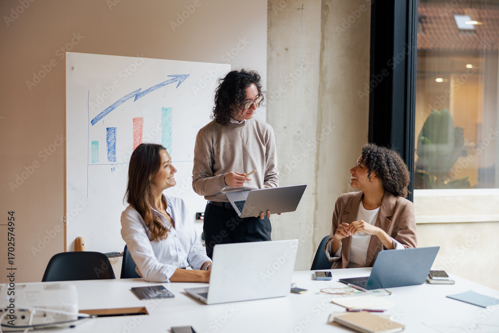 A vibrant team collaboration in a modern office, highlighting professional interaction and fostering innovation