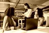 A diverse and dynamic team collaborates creatively in a modern workspace, showcasing effective teamwork in action