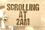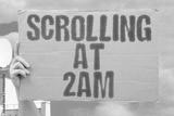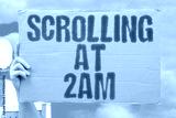 “Scrolling At 2AM” Eyes burn, thumb keeps going — tomorrow already tired. INSOMNIA. FEED. HABIT. BLUELIGHT. FATIGUE. LOOP.