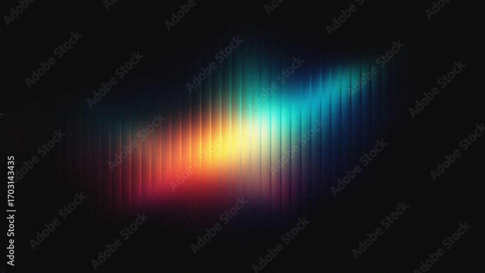 Abstract Dark Background: Vibrant Teal, Orange, and Red Vertical Light Streaks, Grunge Texture, Moody Atmosphere.