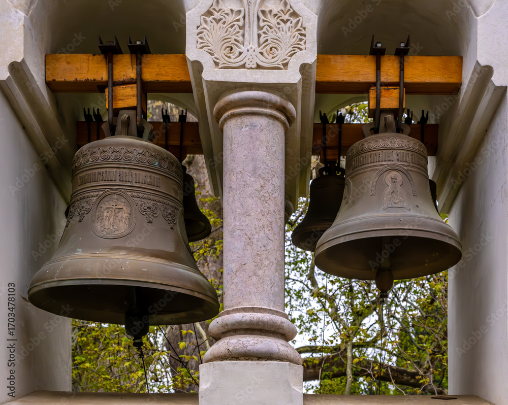 Church bells in close-up.