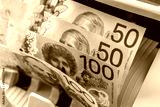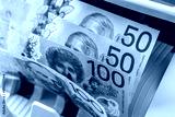 Australia money. Counting Australian dollars in a money counter. Financial and business concept. Currency AUD