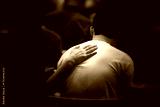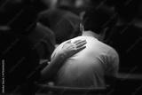 A Christian who places his hands on the backs of people in despair during prayer time, comforts them, and prays with tears in his eyes.