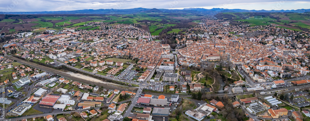 An aerial panoramic view around the old town of the city Besançon or Besancon in France on a sunny day in early spring
