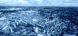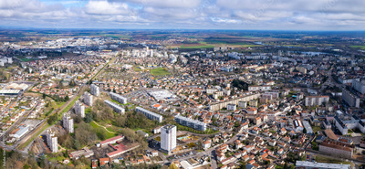 An aerial panoramic view around the old town of the city Chalon-sur-Saône in France on a sunny day in early spring