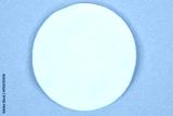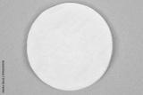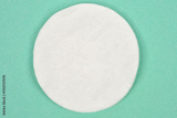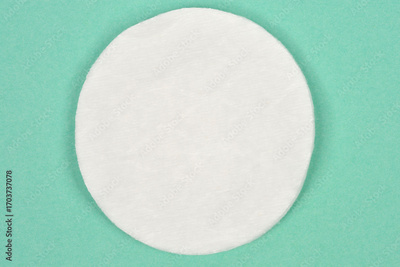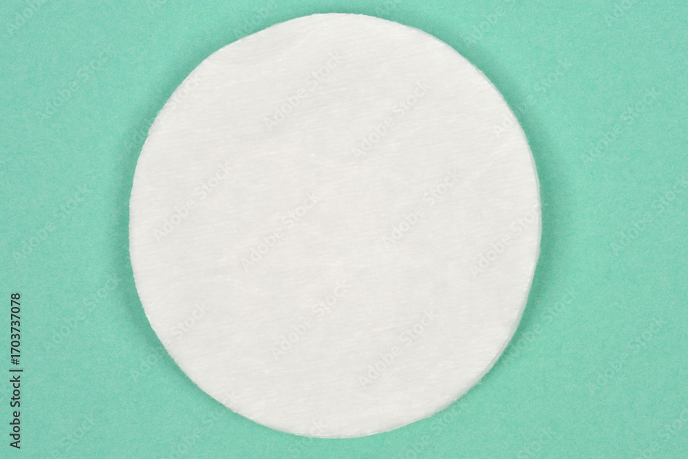 A top-down, studio shot of a clean white cotton pad with visible texture, centered on a solid mint green background