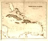 Old map of West India Islands, 1870. Bahamas, Haiti, Puerto Rico