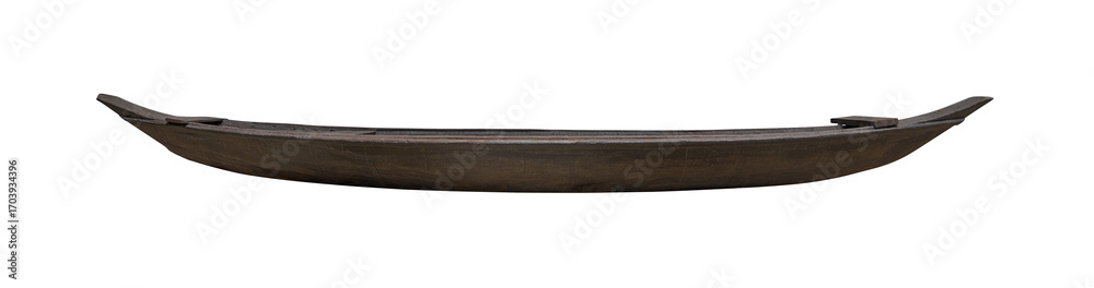 Side view empty ancient thai wooden rowing boat isolated