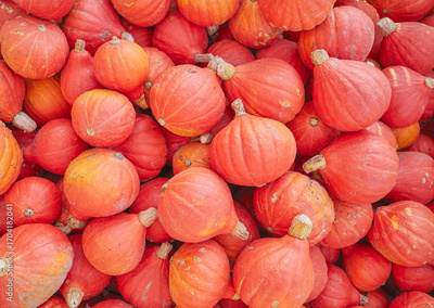 Photo of red kuri squash (Hokkaido pumpkin), selective focus.
