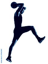 one caucasian basketball player man isolated in silhouette shadow on white background