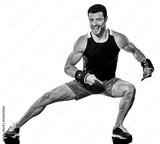 one caucasian fitness man exercising cardio boxing exercises in studio isolated on white background