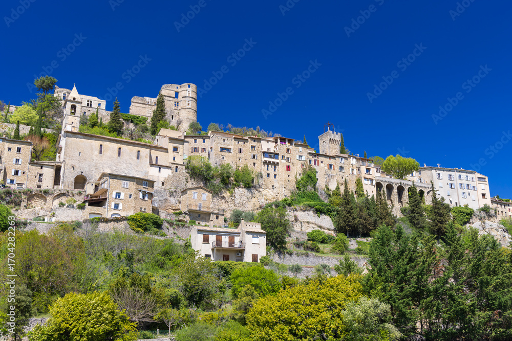 Montbrun les Bains dominating the Drome Valley in Auvergne Rhone Alpes, France