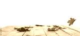 Autumn maple leaves on wooden table. Autumn Product podium isolated