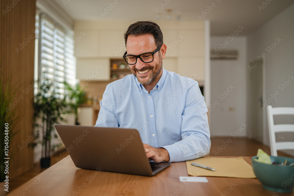 Entrepreneur paying online with credit card on laptop at home