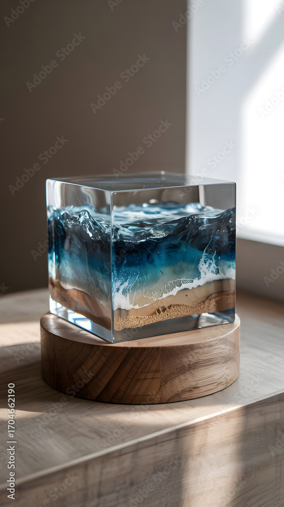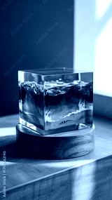 Creative artistic whiskey glass with layered ocean waves inside, surreal concept.