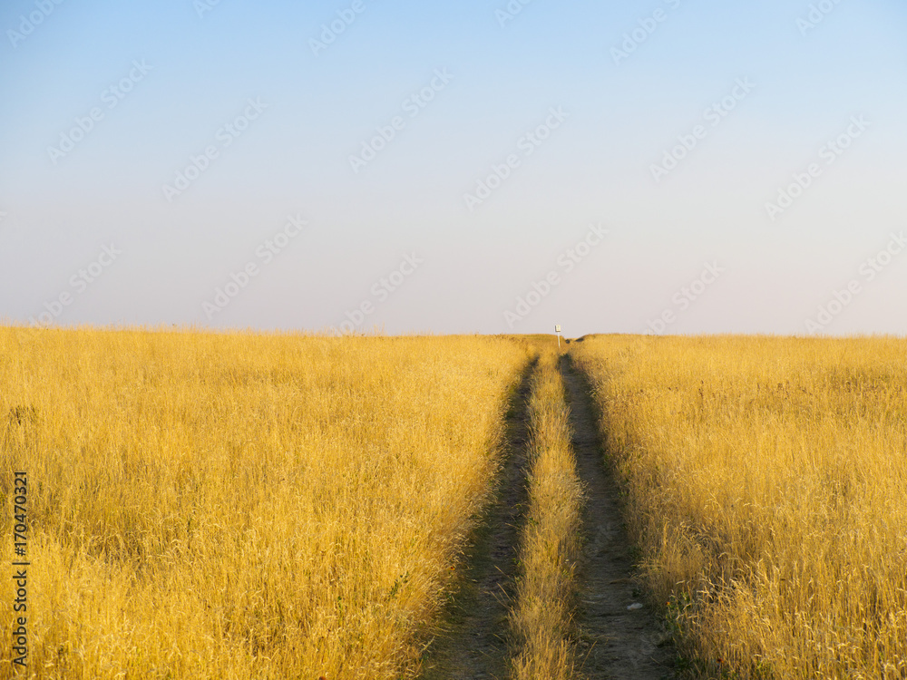 Path through the golden prairie grass fields