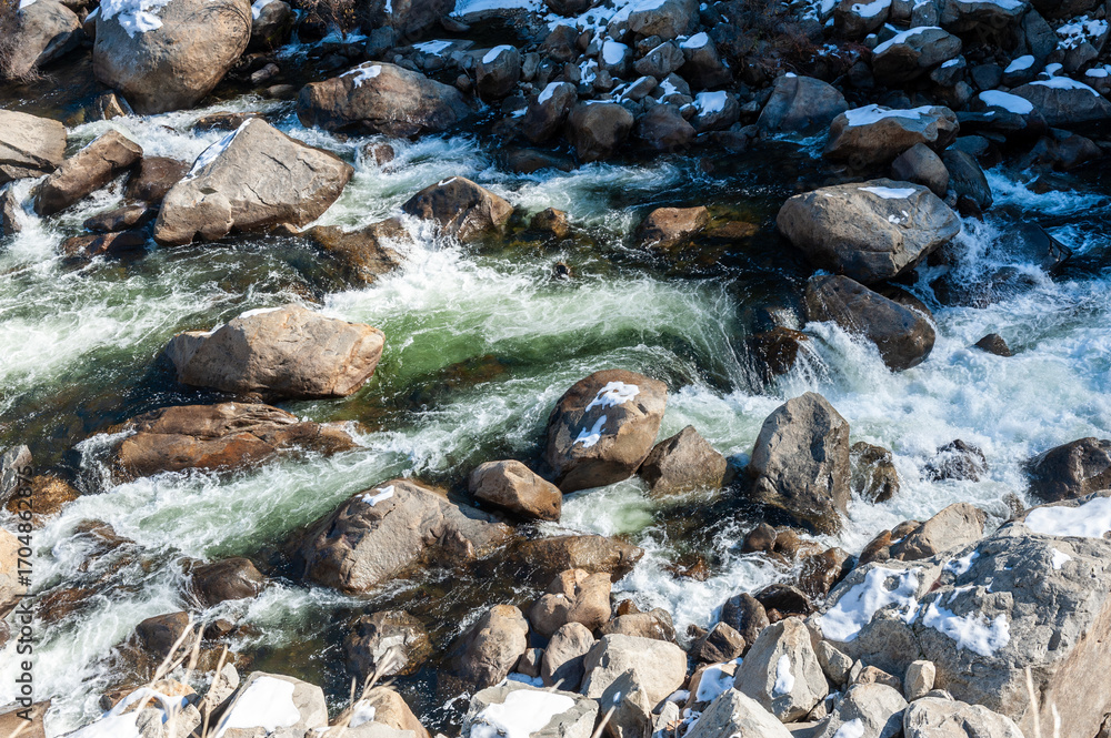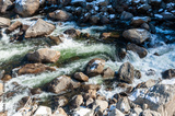 Close-up of wild water rapids in the Merced river near the entrance of Yosemite national park, California.