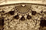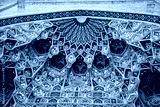 Beautiful Gur-e-Amir Mausoleum in Samarkand, Uzbekistan. Exterior view on sunny day. Guri Amir. In old arabic God is great on the walls