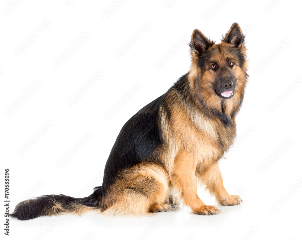 German shepherd long-haired dog sitting isolated