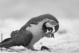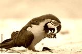 Blue-and-yellow macaw (Ara ararauna), known as blue-and-gold macaw, large Neotropical parrot on the beach. Mambucaba, Angra dos Reis, Rio de Janeiro Brazil. Brazilian birdwatching.