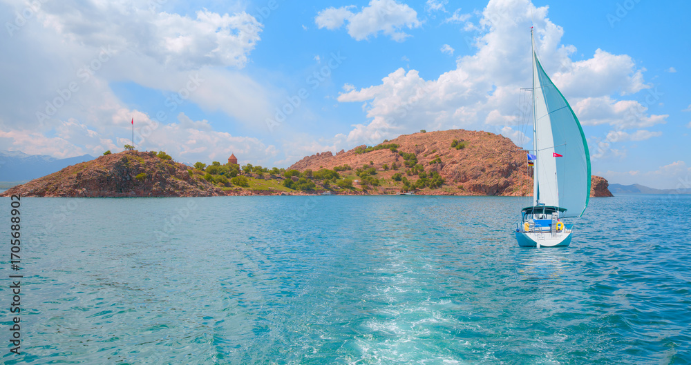 The Armenian Cathedral Church of the Holy Cross in Akdamar Island in Van Lake, Turkey