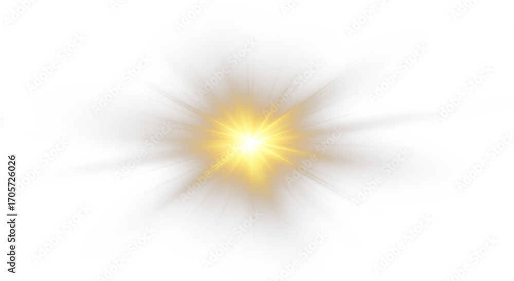 PNG sunlight and glowing sunbeam. Bright shine with lens flare and golden rays.