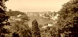 Panoramic view of Arrabida bridge and Douro river in Porto, Portugal. Scenic summer landscape with