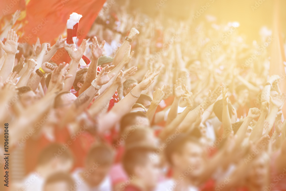 Football fans clapping on the podium of the stadium