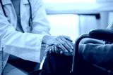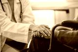 Doctor or Mental health and elderly care concept.Close up hands of helping hands elderly home care.Arthritis person's hand in support of geriatric doctor or nursing caregiver.Mother and daughter.