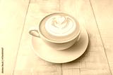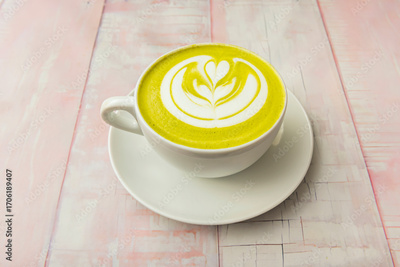 Delicious matcha green tea brewed in the traditional style in a bowl, next to matcha powder, a bamboo spoon (chashaku), and a whisk
