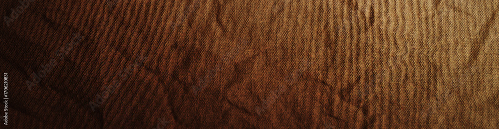 Black dark light brown beige background. Crumpled texture of natural cotton fabric cloth material. Color gradient shadow. Vintage retro rustic simple style. Empty blank. Template. Design. Wide banner.