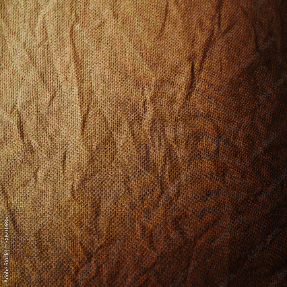 Black dark light brown beige background. Crumpled texture of natural cotton fabric cloth material. Color gradient shadow. Vintage retro rustic simple style. Empty blank. Template. Design.