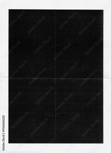 Black rectangle printed on folded white paper with visible creases and fold lines. High-resolution paper texture overlay with dark graphic block.
